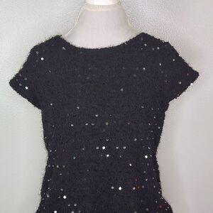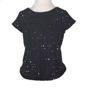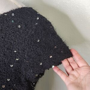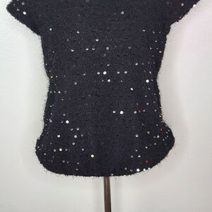 Gap Black Fuzzy Cap Sleeve Sequin Sweater Size Medium