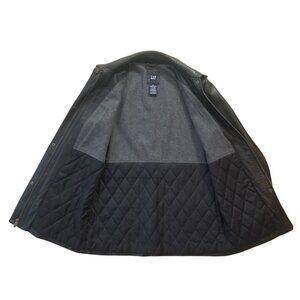 Gap Black Leather Jacket w/ Reversible Zipper and Quilted Lining
