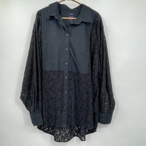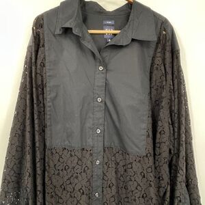 Gap Black Long Sleeve Sheer Oversized Lace Button Up Big Shirt Size XL