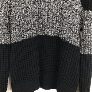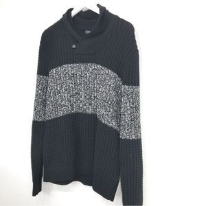 Gap Factory Black Marled Colorblock Chunky Knit Pullover Collared Sweater