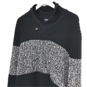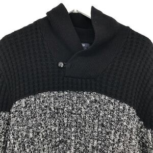 Gap Black Marled Colorblock Chunky Knit Pullover Collared Sweater
