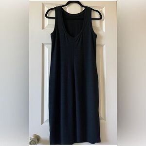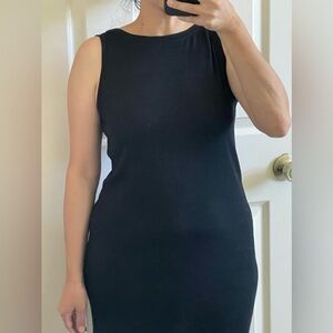 Gap Solid black dress, midi length,knit stretchy fabric, minimalist neutral color, sleeveless, round neckline,slim fit, versatile style, very soft and comfortable fabric. Excellent preowned condition,minor signs of wear. Runs large, fit perfectly S/M size