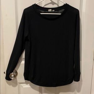 Excellent condition from smoke free owner- circle or shirttail hem scoop neck sweater from Gap. Solid black, lightweight easy care fabric. Size XS but runs big, I have this is 3 sizes, XS to Med, wear the small the most and I’m usually a medium.