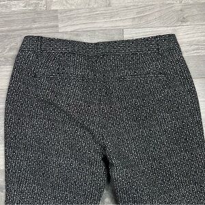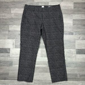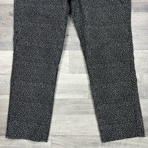 FEATURES: Womens black pattern slim crop pants. Pants have hook and loop and zipper front closure. Functional side pockets and faux back pockets.