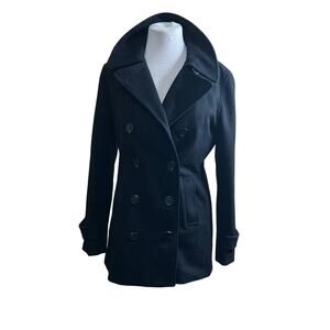 Gap Black Recycled Wool Double Button Coat Womens S in great Preowned condition