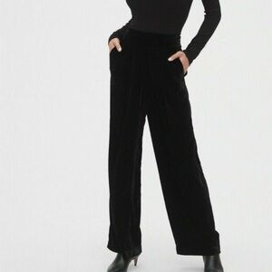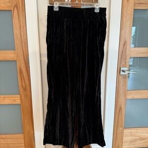 Gap Black Ribbed Crushed Velvet Wide-Leg High-Rise Holiday Trousers Large EUC