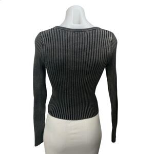 Gap Black Ribbed Knit Button Down V-neck Long Sleeve Crop Cardigan Sweater Top S