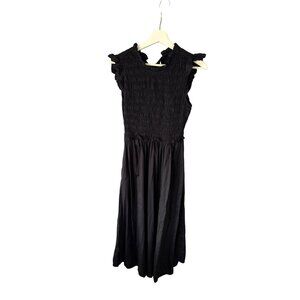 Gap Black Smocked Midi Dress Sleeveless XS Petite Summer Casual Whimsygoth