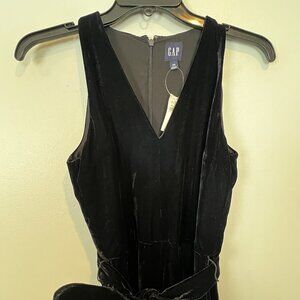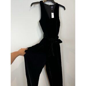 Gap Black Velvet Jumpsuit Size XS V-neck Belted Waist Wide Leg NWT $118