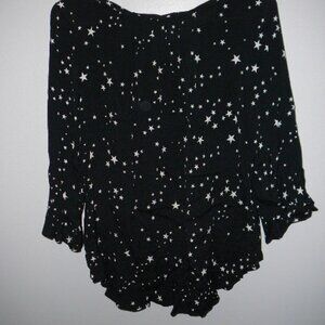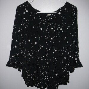 Gap Black & White Stars 3/4 Bell Sleeve Blouse Ruffle Trim-Size XS