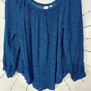 Gap Black with Blue Hearts Peasant Off Shoulder Blouse Top