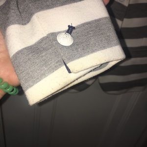 Casual workwear- this Gap blazer is fully lined, with two-button closure. Looks good buttoned or left open. Has a nautical feel, and can easily be worked in with other work separates. Only real area of wear to notice are slight pulling/discoloration on sleeve cuff- see photos for a closer look. Priced to move- need more room in my closet!!