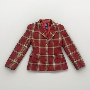 Gap Blazer Womens Size 6 Vintage Wool Red Plaid Lined Three-Button Placket