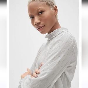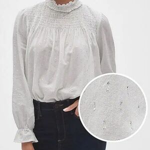 Gap Blouse MetallicClip Dot Long Sleeve Smocked White Size XL