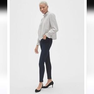 Gap Blouse Long Sleeve Ruffle Neckline White with Silver Detail Size XL Extra Large