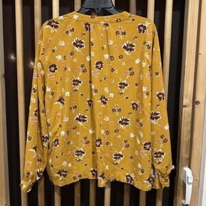 Gap Blouse Womens 2XL Yellow Purple Floral Long Sleeve Rayon Pullover Top V Neck