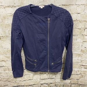 Gap Womens Medium Blue Cotton Quilted Zipper Moto Jacket in good used condition.  The material tag has been cut out.  No stains, tears or rips.