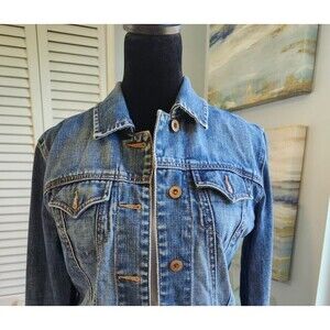 Effortlessly cool Gap Blue Denim Jean Jacket XS Cotton Classic Trucker Button Front in a true-blue wash, perfect for layering all year round.