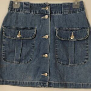 Gap Blue Denim Skirt Sz 4 Five button front Cargo Pockets 15" Long