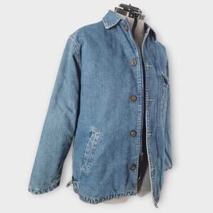 Gap Blue Jeans Chore Jacket Men's S Denim Zip/Button Closure Lined W/Pockets