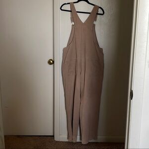 Vintage Stylish tan corduroy overalls with adjustable straps. Perfect for casual wear. Size M.