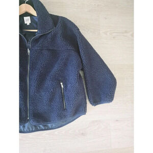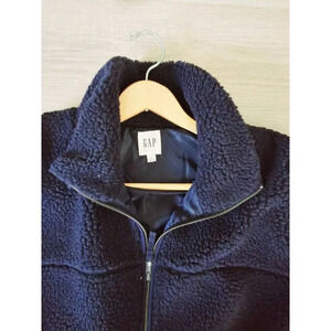Gap Blue Navy Uniform Fleece Sherpa Full Zip Long Sleeves Pockets Jacket Size XL