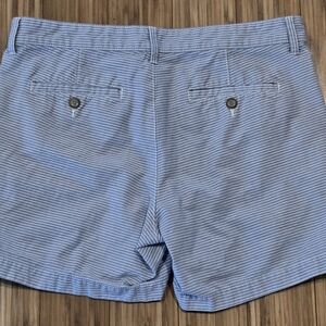 Stylish blue striped shorts with a button closure. Perfect for casual outings. In good condition.