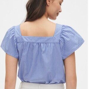 This blouse offers a stylish square neckline and flutter sleeves, crafted from breathable cotton for a relaxed fit. Its button-up design adds a touch of elegance to casual wear.