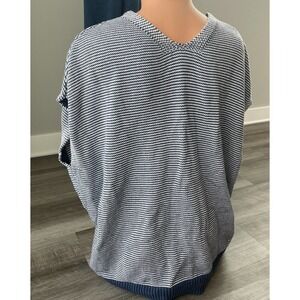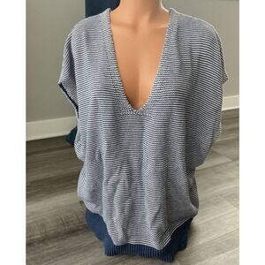 Gap Blue White Striped Knit Oversized Sweater XS Deep V-Neck K1