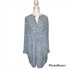 Gap Blue & White Tribal Paisley Long Sleeve Midi Dress Size Medium