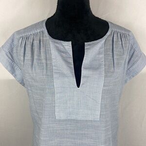 Gap Blue and White 100% Cotton Pin Stripe Blouse with Hi-Low Hem, V Neck, Perfect for Summer!