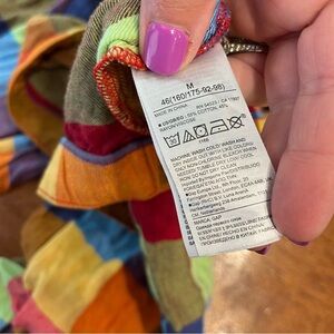 See photos for spot near neckline. Vibrant checkered shirt and pants set. Features a mix of red, blue, orange, and green colors. Perfect for a bold look.