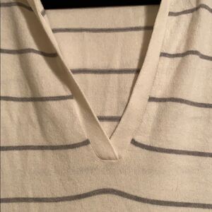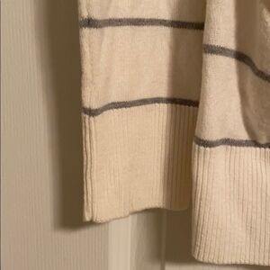 Gap Body Ivory & Grey Striped V Neck Hooded Pullover Sweater Size Large