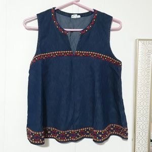 Gap Bohemian with Embroidered Detail (yellow/orange/red) Denim Tank Blouse Top