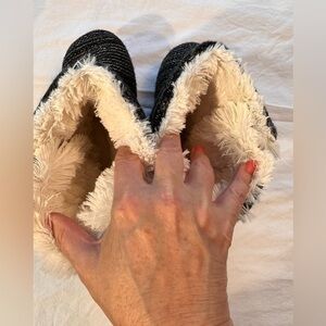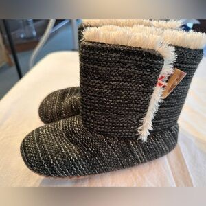 Cozy fabric booties lined with the softest shearling style lining. Seem to have never been worn.