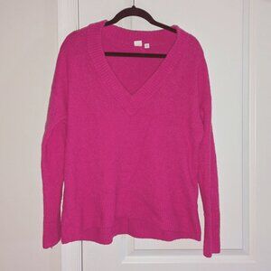 Gap Boucle V-neck Wool Blend Neon Fuchsia Solid Soft Knit Long Sleeve Sweater MP