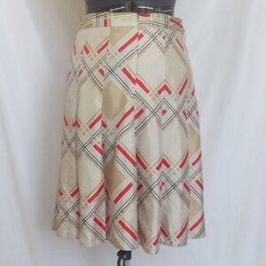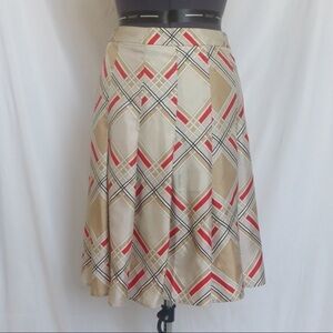 Gap Box Pleated Tan and Orange Geometric Skirt, Size 0 🔴CLEARANCE🔴