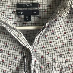Gap Boyfriend Fit Floral Striped Button Up Blouse