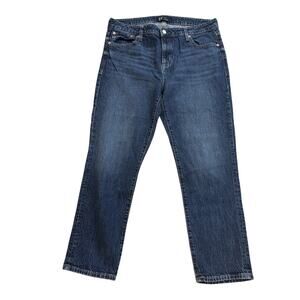 The Gap Boyfriend Jeans in size 14/32R are a stylish and comfortable choice for women. These jeans, from the brand Gap, feature a regular fit with a relaxed boyfriend style. The waist size is 38 inches and the inseam is 32 inches, making them a versatile option for everyday wear. Fast Shipping. Item 251