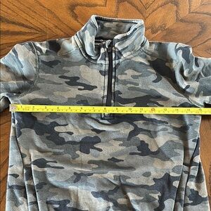 This Gap boys green camouflage quarter-zip pullover sweatshirt is in good condition. It has been gently used and it very warm with a soft, fuzzy lining. There are also two pockets.