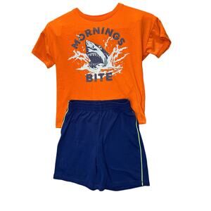 Gap Boys Pajama Set Size 8 Orange Graphic shark Top with Blue Shorts Sleepwear