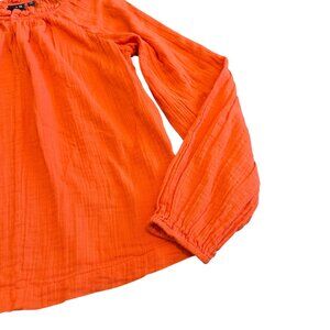Gap Bright Orange Long Sleeve Shirt Top Blouse Comfy Gauze Crew Neck Size Small