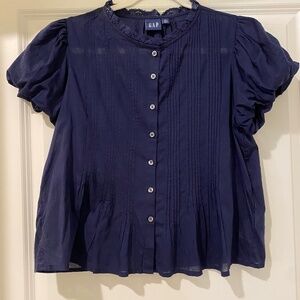 Gap Bubble Sleeve Pintuck Top, size Petite Small (could also fit XS) EUC
