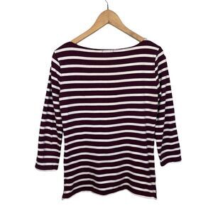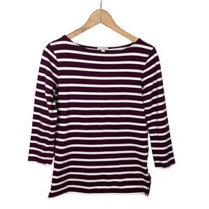 Classic Breton style tee from Gap in burgundy & white stripes featuring cute side zipper detailing.