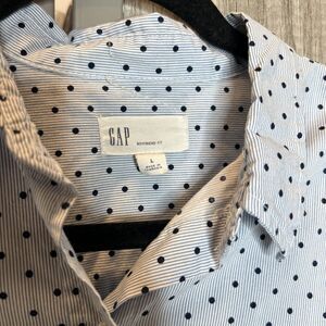 Gap Button Down Shirt Boyfriend Fit Polka Dots Navy Long Sleeves Size L