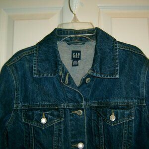 Gap button front denim jacket in good to very good used condition. There are two chest pockets and buttons at the cuff. The size is women's or junior size S, with a chest measurement of the jacket of 36" and a jacket length of 21.5" from shoulder seam to bottom hem. Please view the photos for details. Smoke and pet free home.