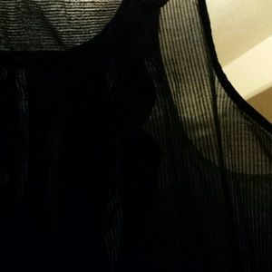 Cute button up tank top from Gap. Really hard to capture in pictures, but has four ruffles on each side of the buttons, near the neckline. Fabric is striped and semi-transparent. EUC