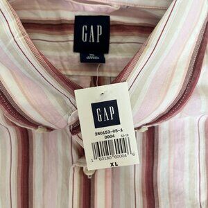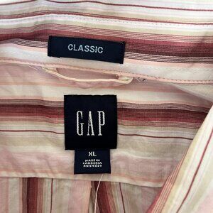 Gap Button Up Shirt Mens XL Striped Pink & Red Classic Cotton Long Sleeve Preppy