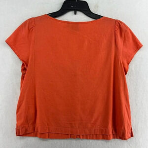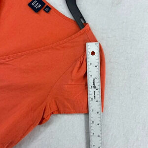 Gap Button-Up Shirt Women's Sz PS Orange Relaxed Fit V-Neck Cropped Side Slit