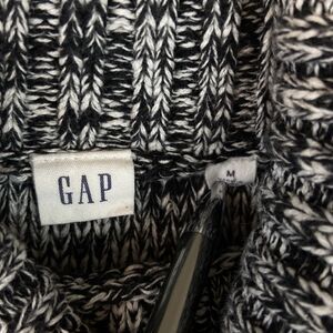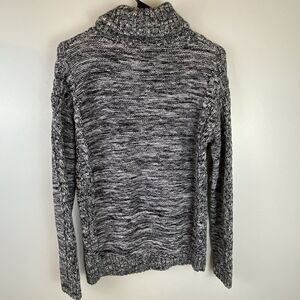 Gap Cable Knit Turtleneck Sweater Womens Black White Marled Size Large